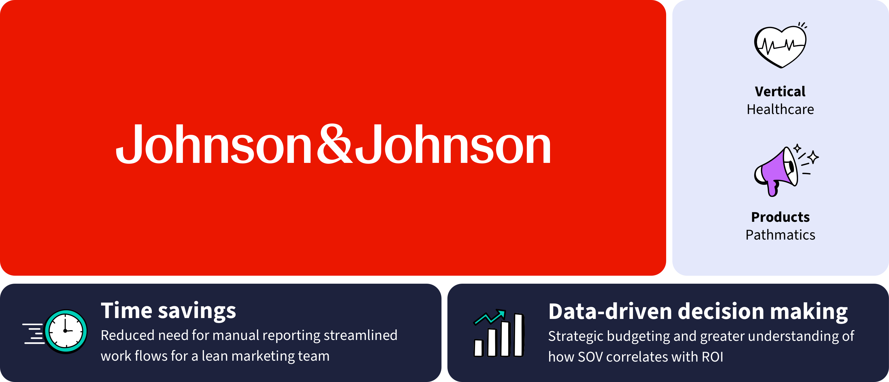 As a leader in the consumer healthcare industry, Johnson & Johnson manages a vast portfolio of beloved brands that address the needs of consumers and health care professionals worldwide. To maintain a competitive edge, the company needed deeper insights into share of voice (SOV) — a metric critical to assessing brand visibility across digital platforms. Johnson & Johnson relies heavily on social media channels to reach their customers; when it realized it needed further insight into how competitors were spending on these channels, the company turned to Pathmatics.