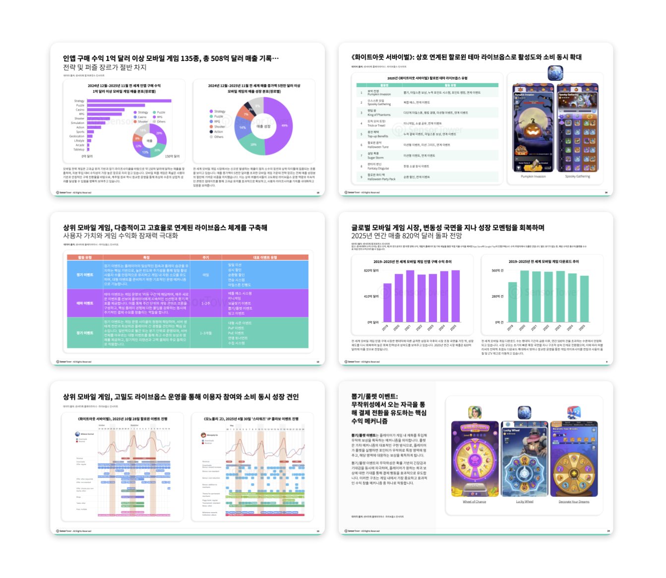 2025년 전 세계 매출 상위 모바일 게임의 라이브옵스 전략 프레임워크를 심층적으로 분석하고, 과제, 상시 할인, 연승 메커니즘 등 정기 이벤트, 배틀 패스 시스템, 마일스톤 진행, 미니게임 등 테마 이벤트, 대형 시즌 이벤트, 토너먼트, 수집 시스템 등 대형 이벤트의 구조적 특징과 대표 사례를 상세히 살펴봅니다.