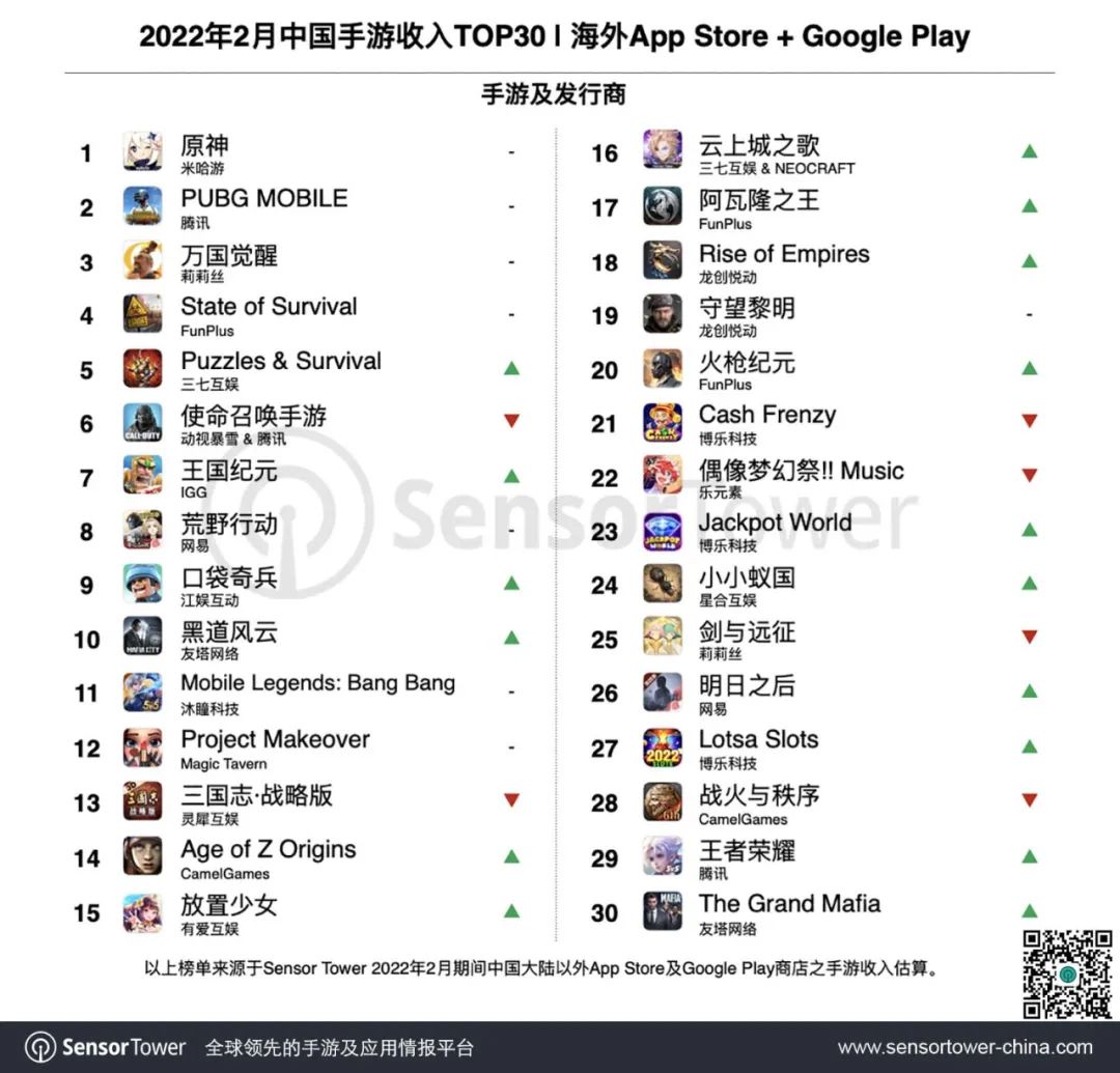 随着2.5版本于2月16日上线,米哈游《原神》收入迎来又一轮峰值,再度超越《糖果传奇》、《Roblox》等西方作品,蝉联海外手游收入榜榜首。